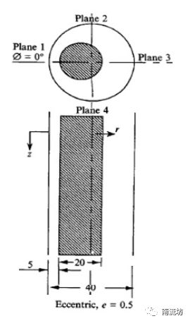 本案例介绍偏心环空内的轴向流动,但不考虑内圆柱的旋转。通道偏心率为0.5,雷诺兹数是26600。