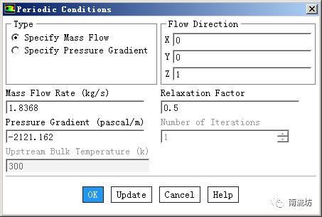 边界条件:轴向为周期性边界条件,流量为1.8368 kg/s