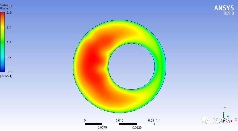 计算域:外圆柱直径40.3mm,内圆柱直径20.1mm,偏心率0.5,通道厚度设为10mm
