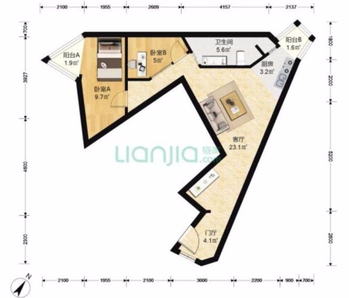 户型方正:方正的房子整体利用率高,也好摆放家具