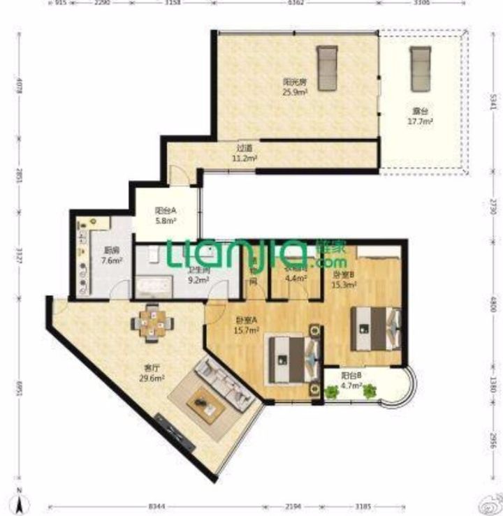 客厅卧室朝南:保证充分的室内自然采光