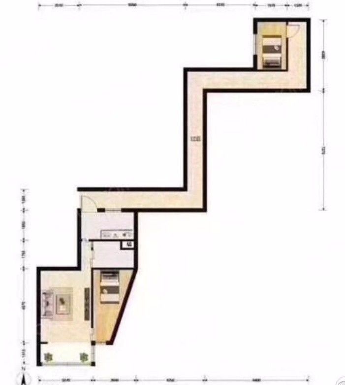 这是一个好长的户型,两室一厅一厨一卫。神之作!