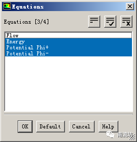 (2)单击Equations按钮,弹出Equations(方程)对话框,取消选择Flow,单击OK按钮确认。