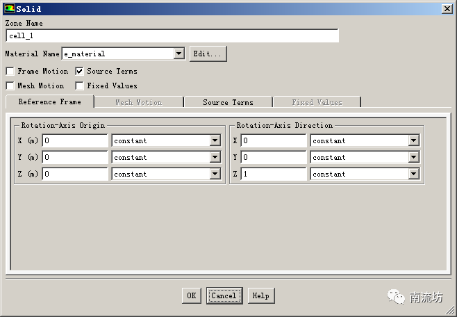 (1)单击主菜单中Define→Cell Zone Conditions按钮启动Cell Zone Condition(区域条件)面板。
