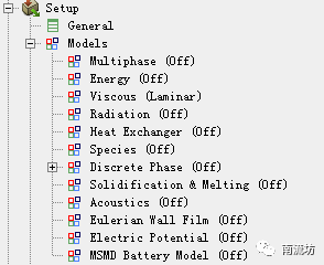 (2)在模型设定面板双击Energy按钮,弹出Energy(能量模型)对话框,勾选Energy Equation激活能量方程,单击OK按钮确认。