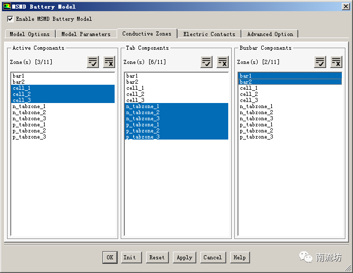 (2)设定bar_1、bar_2、n_tabzone_1、n_tabzone_2、n_tabzone_3、p_tabzone_1、p_tabzone_2和p_tabzone_3在Material Name中选择相应的busbar_material。