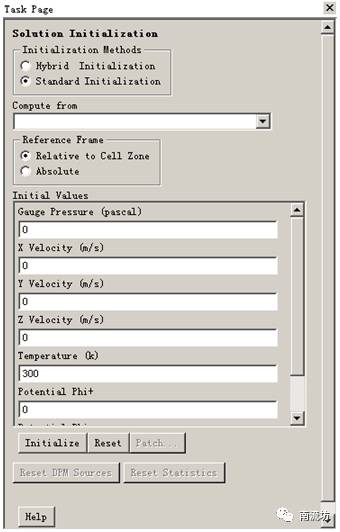 单击主菜单中Solve→Initialization按钮,弹出Solution Initialization(初始化设置)面板。