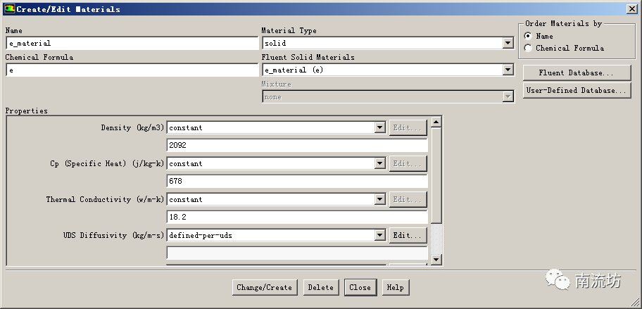 (6)在物性参数设定对话框中,按照以下参数设定新物质n_material。