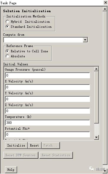 单击主菜单中Solve→Initialization按钮,弹出Solution Initialization(初始化设置)面板。