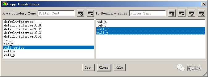 在From Boundary Zone中选择wall_active,在To Boundary Zone中选择wall_p和 wall_n,单击Copy按钮完成复制。