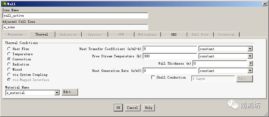 (2)在边界条件面板中,双击wall_active弹出边界条件设置对话框。