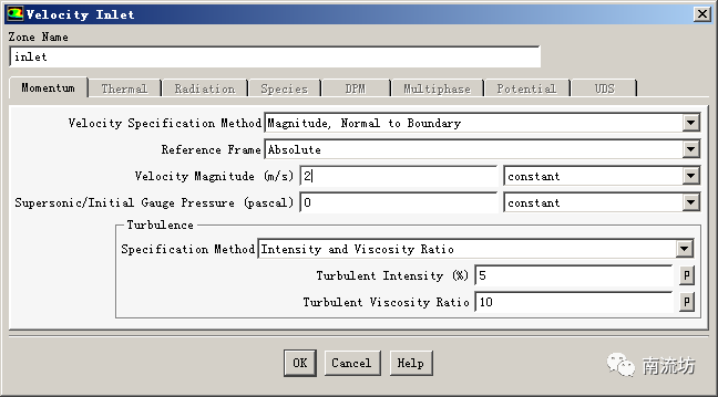 在不可压流计算中不需要使用质量流入口条件,这是因为在不可压流中密度为常数,所以采用速度入口条件就可以确定质量流量,因此就没有必要再使用质量流入口条件。