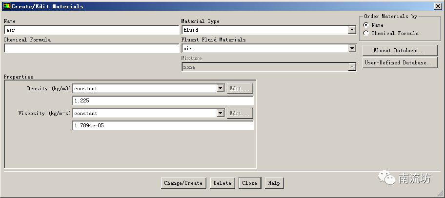 在使用CFD软件进行模型设置的过程中,有些特殊的物质参数只有在激活响应的数学模型的之后才会出现,比如混合物物质只有在激活组元运输方程后才会出现,惰性颗粒、液滴和燃烧颗粒在引入弥散相模型之后才会出现等等。另外,很多CFD软件中都提供了丰富的物质资料可以直接调用,但是对于特殊情况,还是要根据实际情况和计算需要来修改材料的物性参数以获得更为准确的仿真结果。