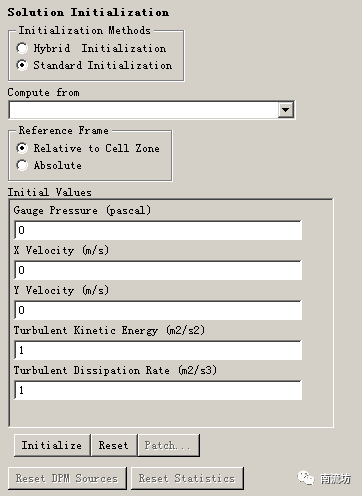 在开始进行计算之前,必须为流场设定一个初始值。设定初始值的过程被称为“初始化”。如果把每步迭代得到的流场解按次序排列成一个数列,则初始值就是这个数列中的第一个数,而达到收敛条件的解则是最后一个数。显然如果初始值比较靠近最后的收敛解,则会加快计算过程,反之则会增加迭代步数,使计算过程加长,更严重的是如果初始值给的不好,有可能得不到收敛解。