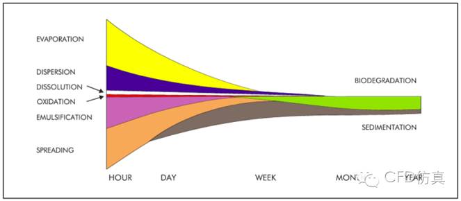 扩展、蒸发、扩散和溶解可以定义为短期的风化过程,而乳化、生物降解和光化学氧化可以认为是长期的风化过程。