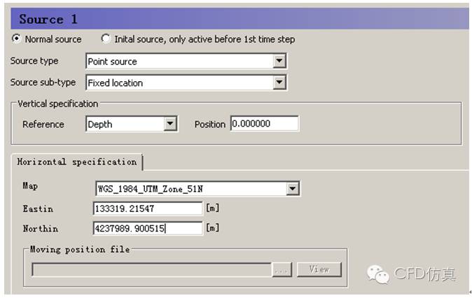 对移动源需要指定一个包含了水平坐标和垂向位置是时间函数的dfs0文件。