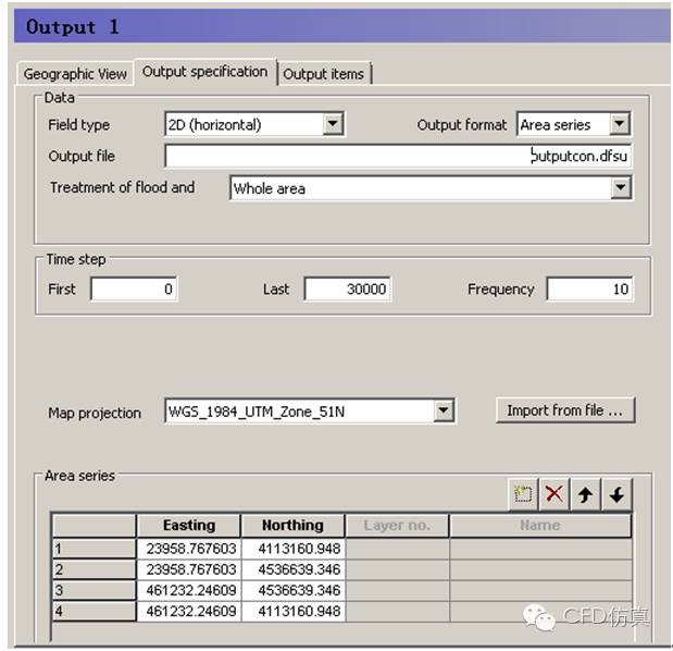 对每个选择的输出文件,需要指定输出类型,输出文件名和存放地址以及时间步长,对应于输出格式的选择,同时需要指定输出数据的地理范围。
