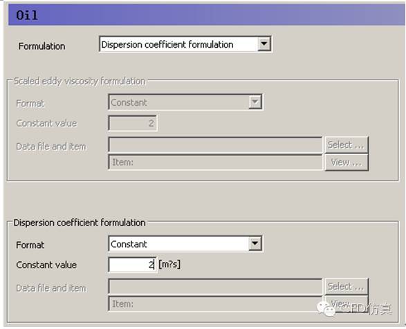 选择扩散系数公式需要指定扩散系数(单位m2/s)