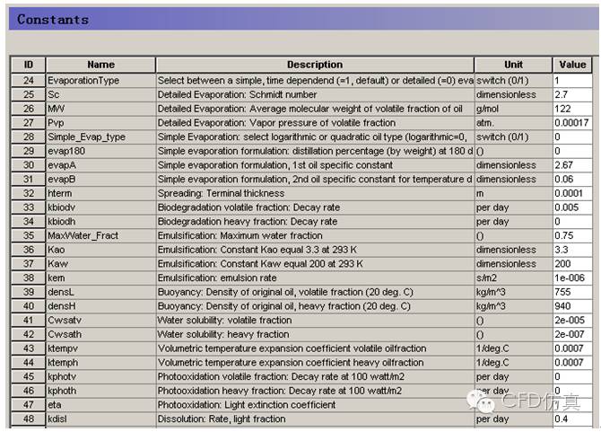 欧拉常数在时间上为恒定,但在空间上变化。通常在模型中用来描述物理常数或油粒子周围环境变量,例如水的密度或消光系数。
