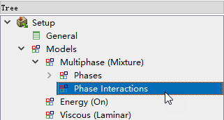 双击模型树节点Models > Multiphase > Phase Interactions,弹出相间相互作用设置对话框