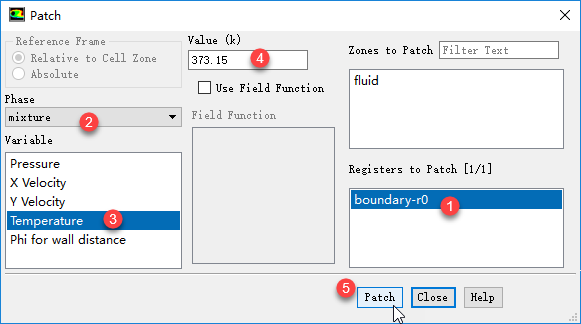 设置前面标记的边界温度为373.15 K,如下图所示顺序进行设置