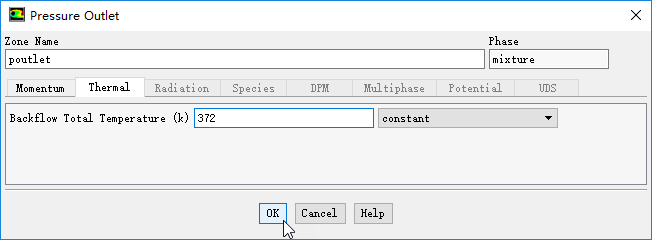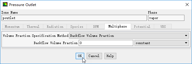 双击模型树节点Boundary > poutlet > vapor ,弹出边界条件设置对话框