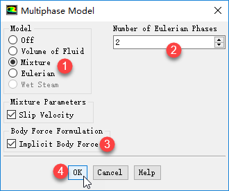 双击模型树节点Models > Multiphase,弹出多相流设置对话框