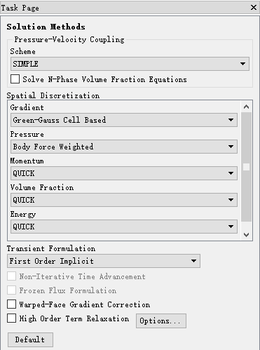 注:若计算域中某一相的运动主要受浮力或重力影响的话,则建议激活选项Implicit Body Force。