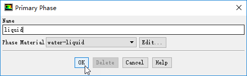 设置Phase Material为water-liquid,修改Name为liquid,点击OK按钮关闭对话框