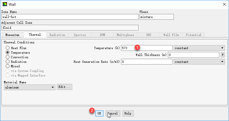 双击模型树节点Boundary > wall-hot,弹出边界条件设置对话框