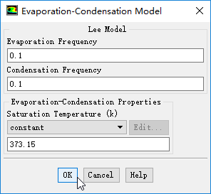选择蒸发-冷凝模型后,会弹出模型参数设置对话框,这里保持默认设置即可。