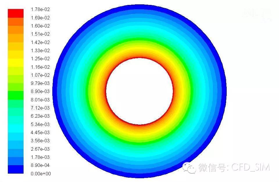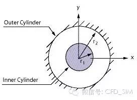 计算域:两个圆柱之间的流体流动,内圆柱以一定的速度转动。内圆柱半径17.8mm,外圆柱半径46.28mm,内圆柱旋转角速度1rad/s。