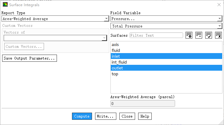 右键选择模型树节点Boundary > outlet,点击弹出菜单项Type → pressure-outlet设置边界类型为压力出口,其他参数保持默认设置