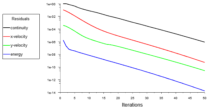 计算在50步收敛到1e-6,计算总耗时2分40秒(至强单核,内存16 G 计算 )。残差如下图所示。