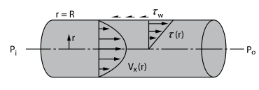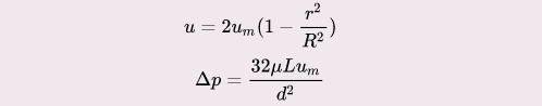 其中给出了充分发展速度表达式及水头损失表达式。分别为: