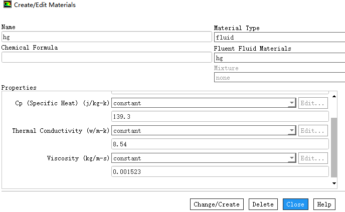鼠标双击模型树节点Materials > Fluid > air弹出材料属性设置对话框