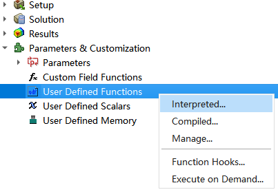 右键选择模型树节点User Defined Functions,点击弹出菜单项Interpreted…弹出解释对话框