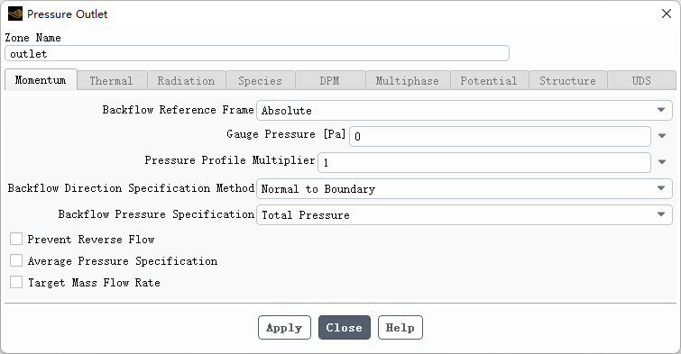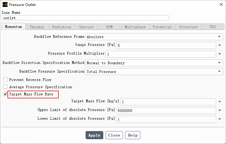 Fluent的压力出口边界中包含有一个Target Mass Flow Rate,有人就想着是不是可以在指定出口静压的同时还指定流量,本文来尝试一下。
