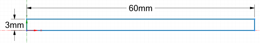 如下图所示的二维轴对称管道模型,半径3 mm,长度60 mm。入口指定总压1000 Pa,出口指定静压0 Pa,不考虑流体介质的粘度,计算中采用无粘模型(主要是懒得计算沿程损失,其实考虑粘度对后面的结论并无影响)。流体介质采用水,指定其密度为1000 kg/m3。