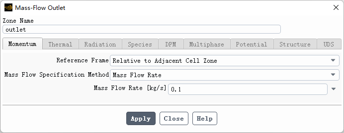 Fluent中提供了流量出口,直接指定出口流量为0.1 kg/s,看看情况怎样。