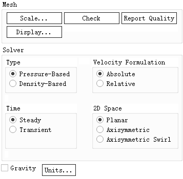 本案例模拟两个平行板之间的粘性流动。其中底板保持静止不动,顶板以恒定速度3 m/s移动。沿板平行方向压力梯度为-12 Pa/m。
