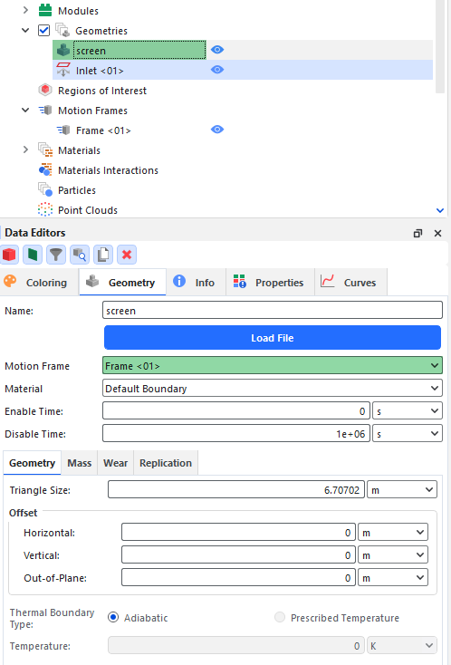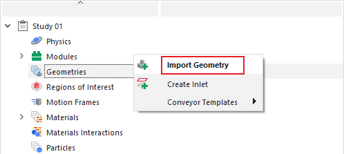 右键选择模型树节点 Geometries,点击弹出菜单项Import Geometry,在打开的文件选择对话框中导入文件screen.stl