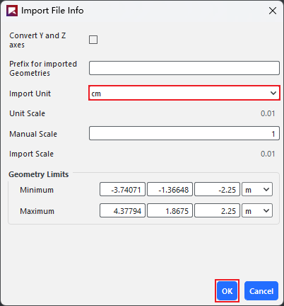 弹出的对话框中选择 Import Unit为cm,点击OK按钮导入几何模型