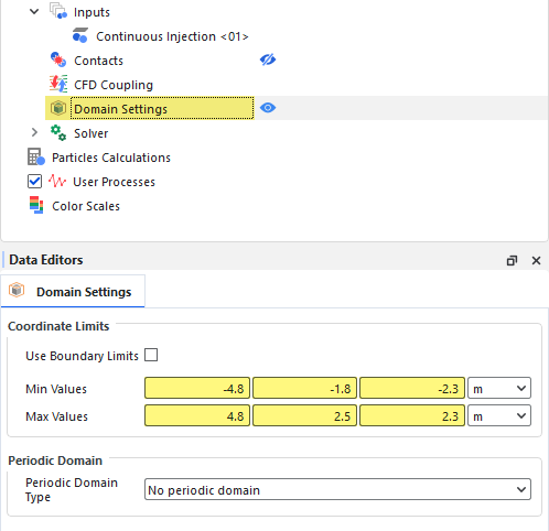 点击模型树节点 Domain Settings,如下图所示设置计算区域尺寸