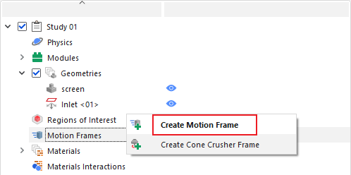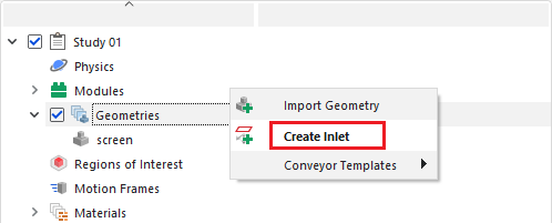 右键选择模型树节点 Geometries,点击弹出菜单项Create Inlet