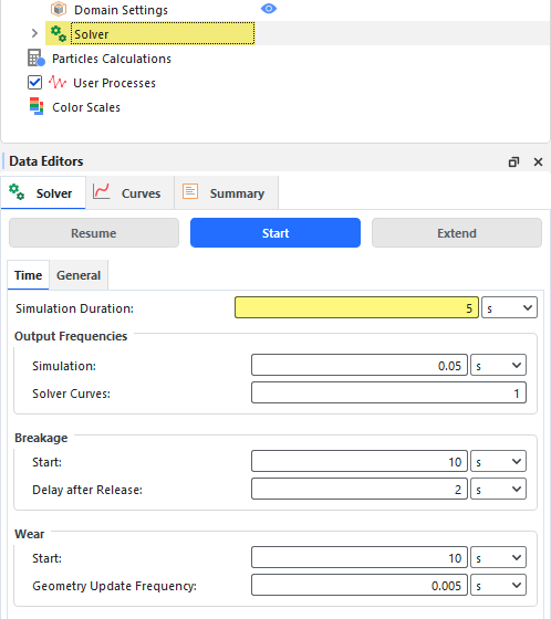 点击模型树节点 Solver,如下图所示设置计算时间为5 s