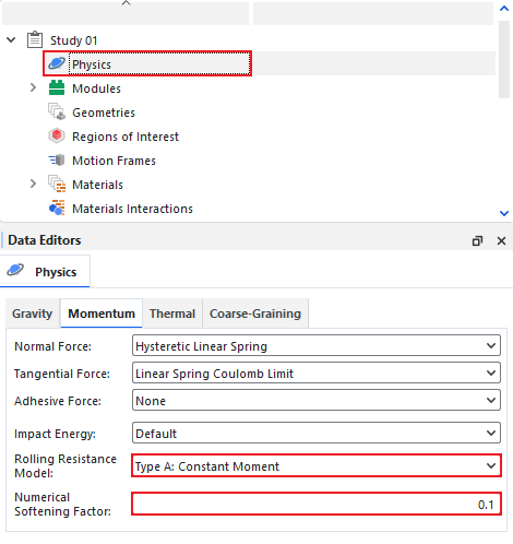 选中模型树节点 Physics,进入Momentum选项卡 -