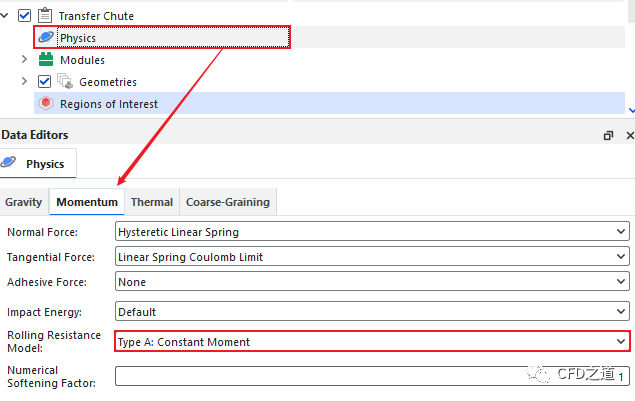 进入 Movement选项卡,指定颗粒的滚动阻力系数