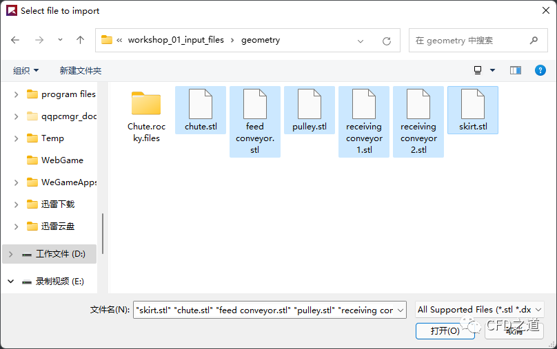 鼠标右键选择模型树节点 Geometries,点击弹出菜单项Import Geometry 打开文件对话框