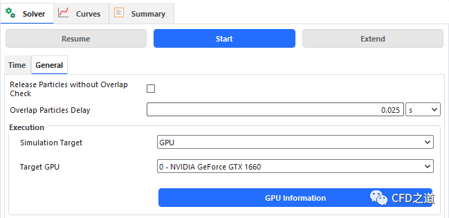 切换到 General选项卡,指定采用GPU或CPU计算,点击按钮Start 开始计算